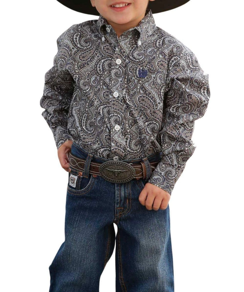 Cinch Toddler Boy's Grey Button Down Paisley Print Shirt