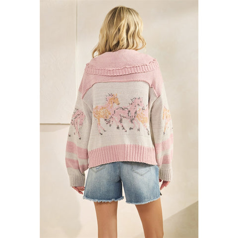 Sweater with Horse Print Hand wash only Model is 5'9 wearing a size small