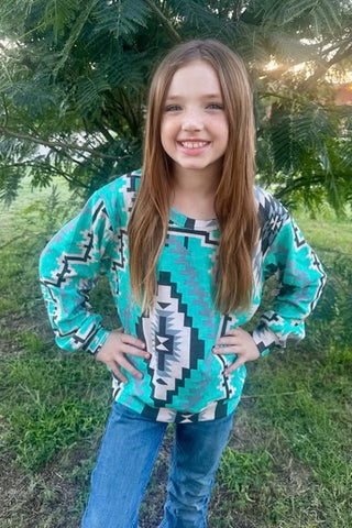 Brighten your little one’s day with the Blue Ridge Top Kids, featuring a vibrant turquoise base and a fun black, gray, and white Aztec pattern. Crafted from a fresh, must-have fabric, this top offers cozy comfort and playful style for every adventure. Perfect for adding a splash of color and pattern to any outfit!
