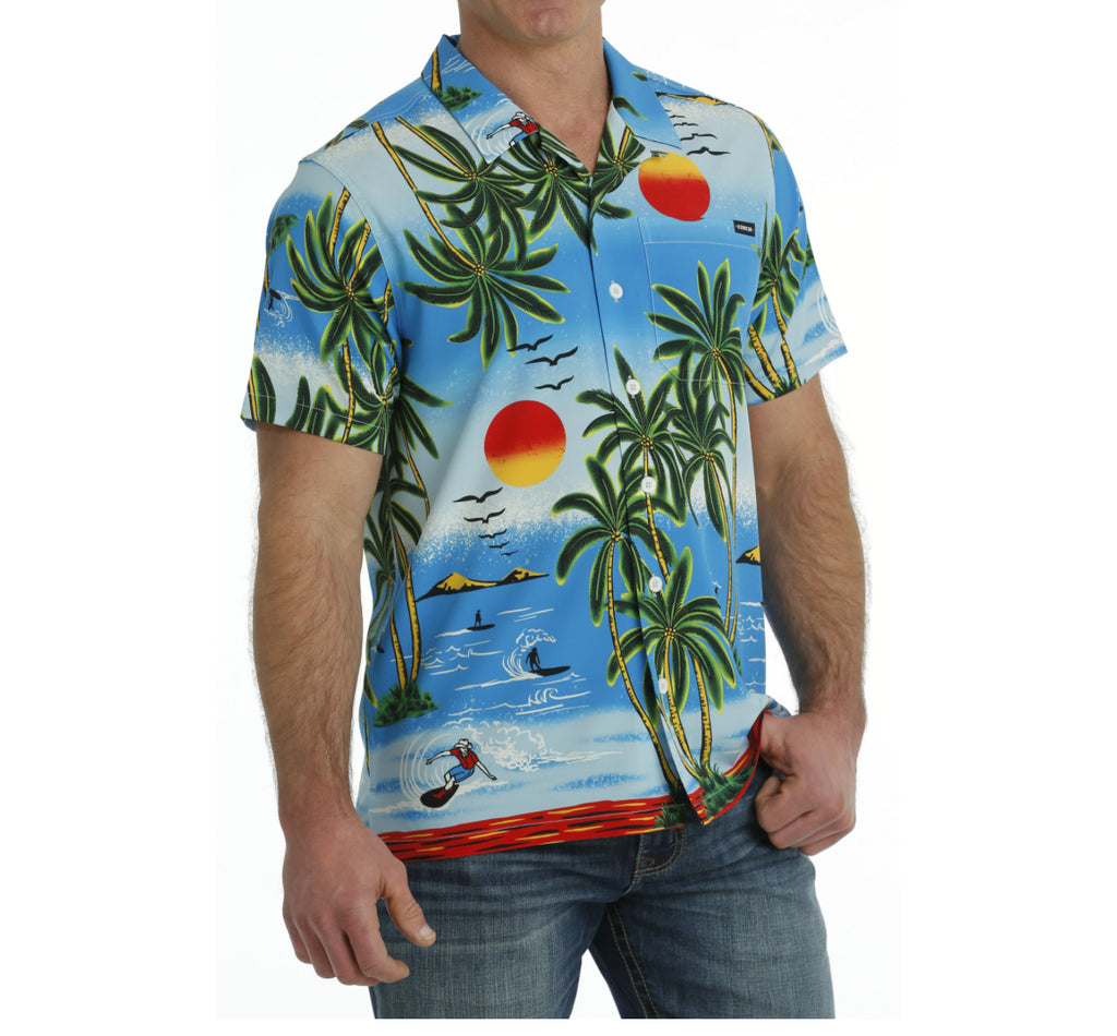 Cinch Men’s Blue Hawaiian Camp Shirt