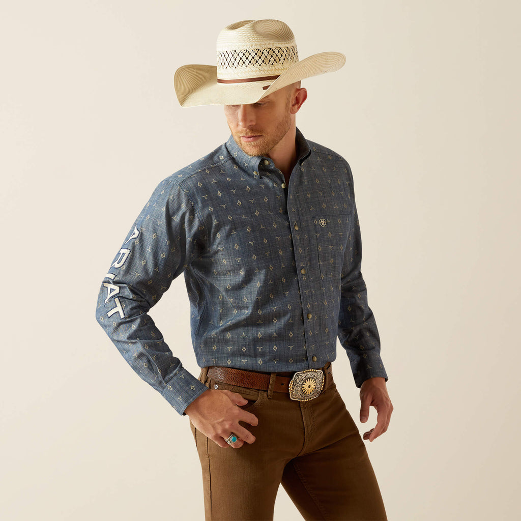 • Bold Ariat® team embroidery on sleeve, collar, and back