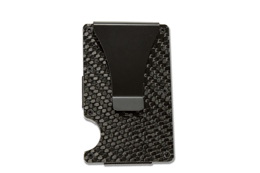 Decorative and stylish mens 3D smart wallet. Antique silver scrolling background with antique brass nail heads and pearl copper scrolling. Carbon fiber back with a stainless-steel clip.