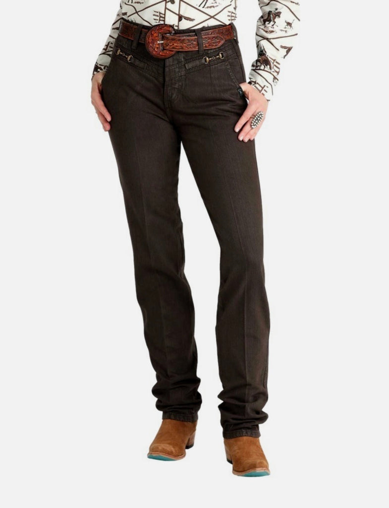 Elevate your everyday style with the Cruel Girl Quinn High Rise Straight Leg Bareback Jean in Brown. Designed with a relaxed fit, tapered leg, and flattering high rise, these chocolate brown jeans offer timeless appeal with distinctive details. The yoke piecing and bareback design create visual interest, while antique gold snaffle bit hardware adds a touch of Western-inspired charm. Perfect for building a versatile wardrobe that works as hard as you do.