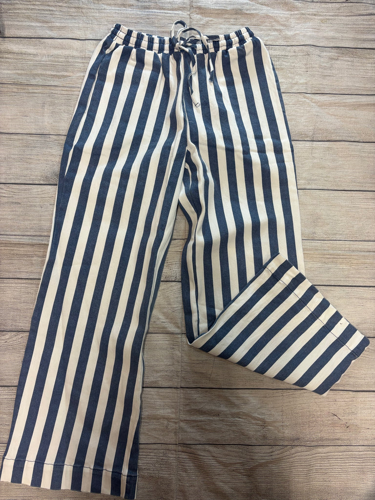 Step into effortless comfort and style with these chic striped lounge pants. Featuring bold navy and cream vertical stripes, they’re designed with a relaxed wide-leg fit and an adjustable drawstring waistband for all-day wear. Perfect for casual outings, beach days, or cozy nights in, these pants combine a timeless pattern with a breezy, laid-back vibe.