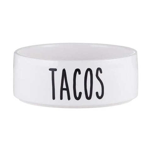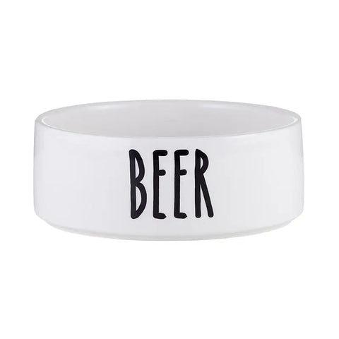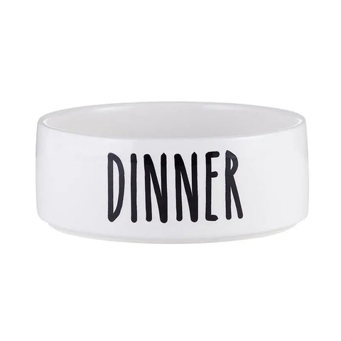 Ceramic pet dish with humorous message. Brighten your pet's meal time with these bowls! • Easy care • Great for kibbles, snack and water • Material: Ceramic • Size: 5.5" Dia x 2.25" H • Care Instructions: Hand Wash Only