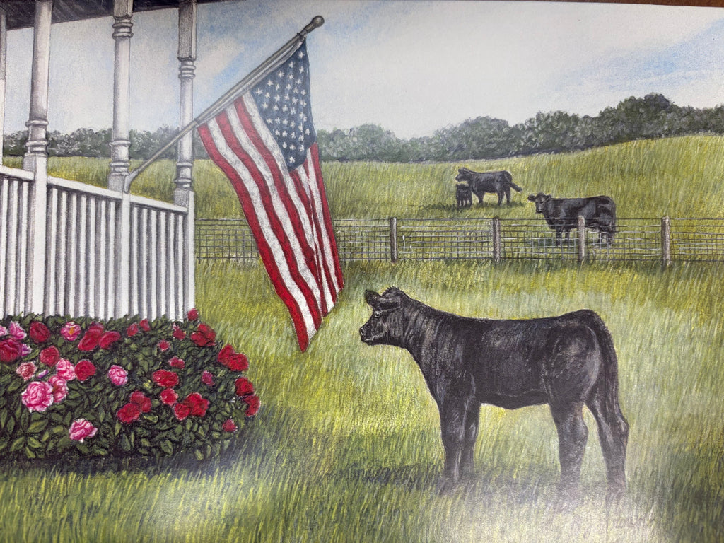 Lazy J Ranch Grey & White American Flag Bull Cap