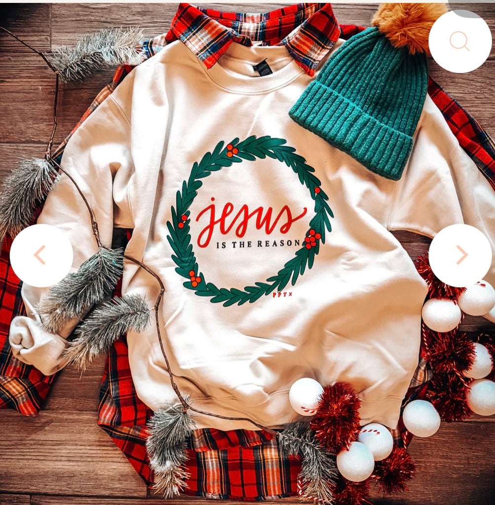 This cozy crewneck sweatshirt is a perfect way to show your love for Jesus! Featuring a festive wreath design, it will keep you warm and stylish during the holiday season and beyond. Let everyone know that Jesus is truly the reason for the season with this comfortable and playful sweatshirt.
